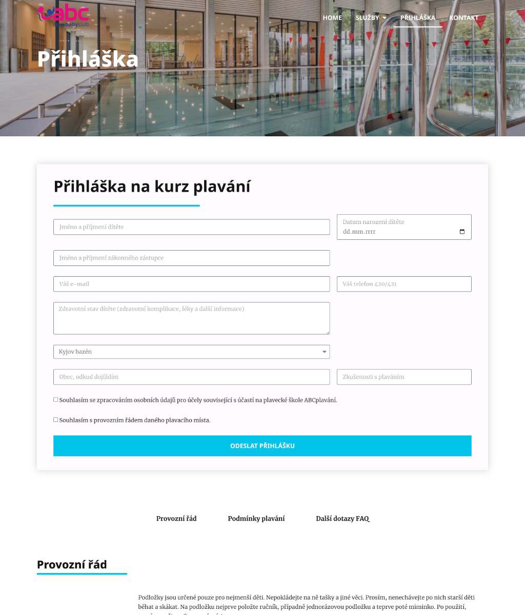 Upečeme funkční a přehledný web na míru vaší plavecké škole.